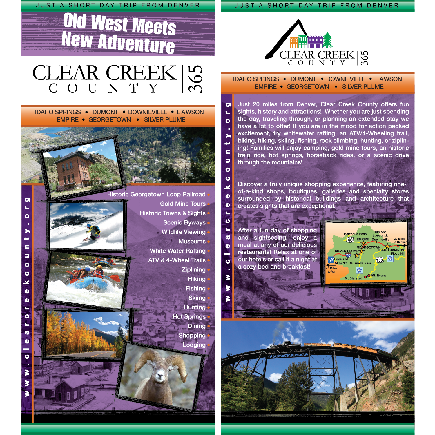 Just 20 miles west of Denver – Clear Creek County is the gateway to the Rocky Mountains offering endless opportunities for outdoor recreation, delicious dining, unique shopping, and history that goes clear back to the Colorado Gold Rush!